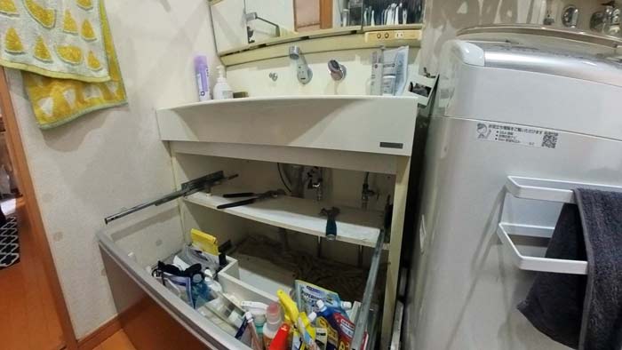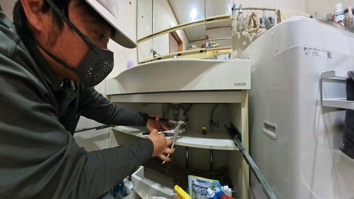本日は大野城市から「洗面台下から水が出てきます~助けて!」のご依頼を受けて行ってきました。